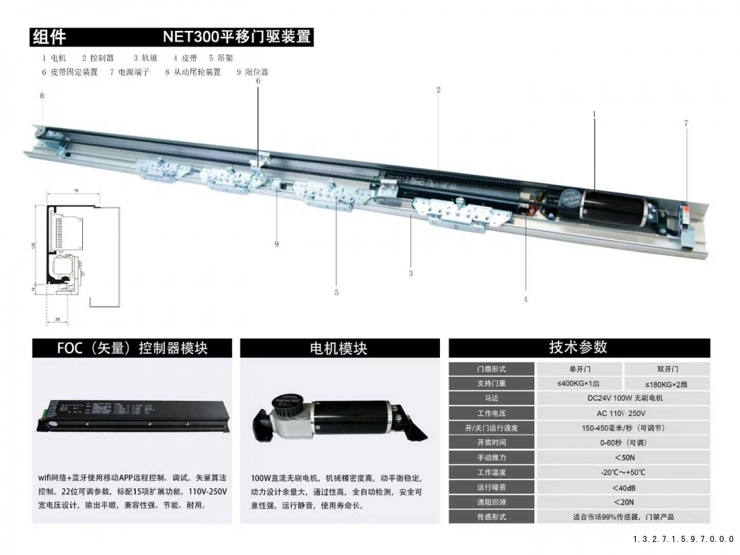 开/关门运行速度150-450毫米/秒(可调节)