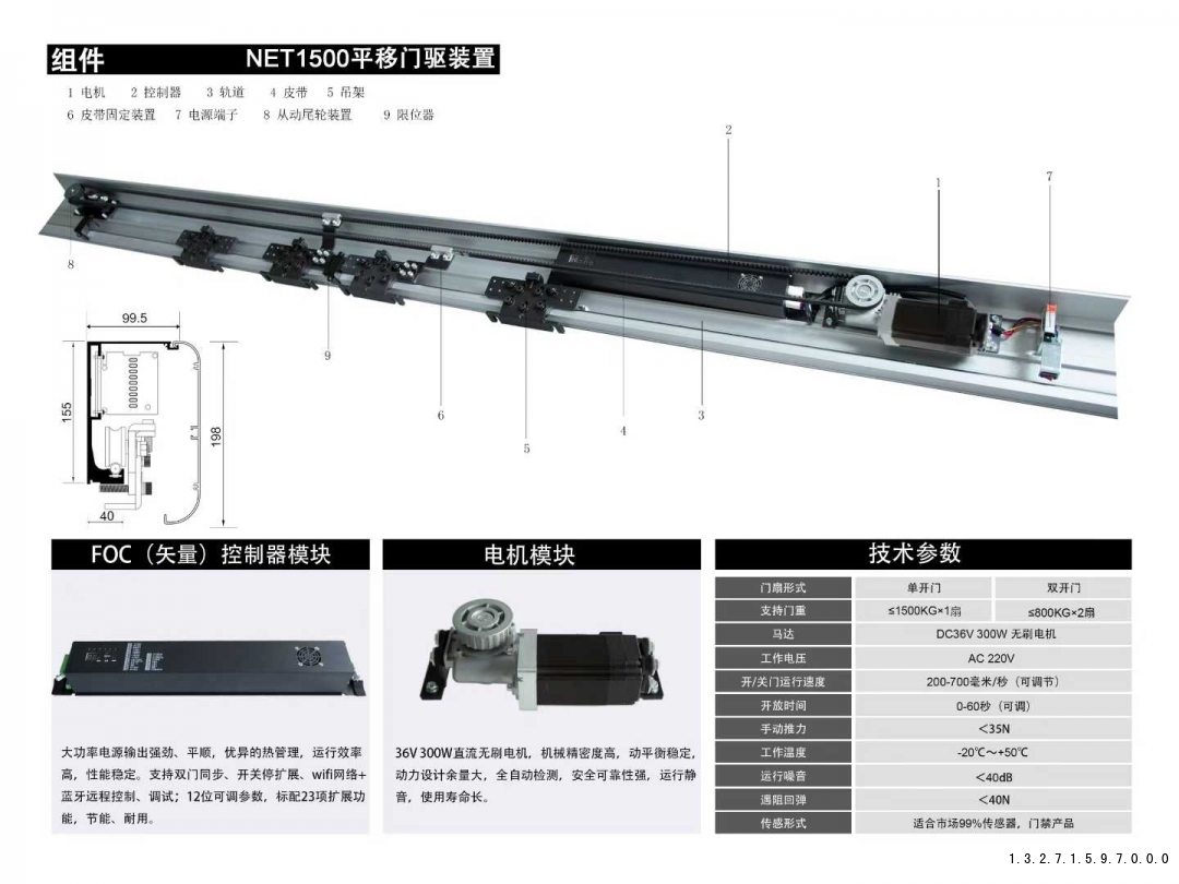 开/关门运行速度200-700毫米/秒(可调节)