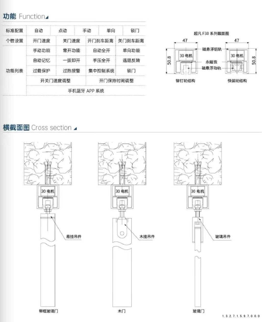 磁悬浮式自动门与旋转电机自动门的对比,磁悬浮自动门电磁感应线圈与永磁动轨之间有1.5-2mm间隙,动轨运动通过磁场相互作用力来实现对门体的开关工作原理磁力软驱动,结构简单,减少了故障点;高性能电源更能防止短路与过压及过流故障,保证系统的耐用与可靠性。可靠性微电脑智能控制系统具有自我学习功能,自动检测门体运动阻力和门的宽度,使门体运动始终保持最佳状态,有效避免夹人、夹物及机件损毁,更具安全信赖感。安全性可随意调节运行速度,调节开关门时间,设置开关门方式;夜间锁保持门关闭并锁定。方便性无磨损、阻力小;实现无噪音、无灰尘,完全靠磁场相互作用力带动门体运动。节能性